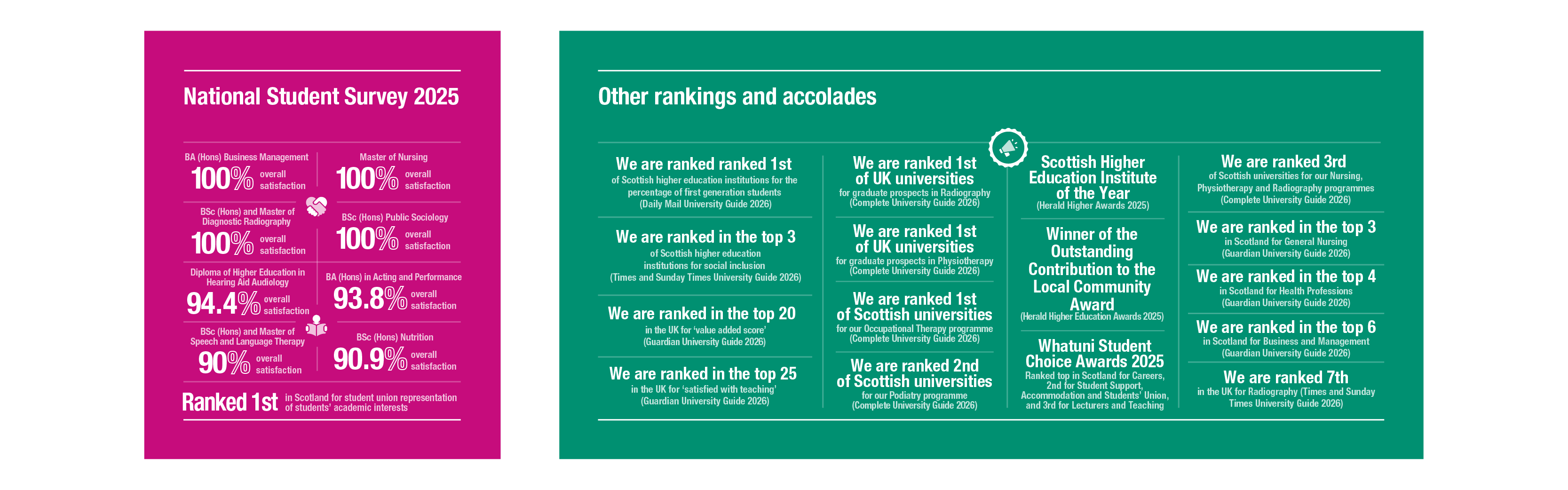 - 3rd of Scottish universities for our Nursing and Physiotherapy programmes; and