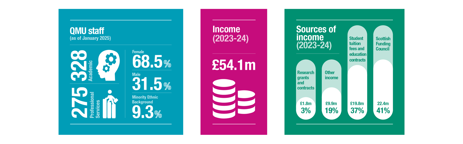 See below for some quick facts and figures about Queen Margaret University. From this page, you can also access our Statement of Accounts and our Strategic Plan.